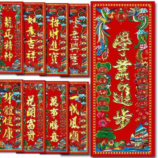 賀紙 縦長 長方形 全9種 (ネコポス便可) | 春節,フェスティバル,グッズ,賀紙,福字,ポスター,開運,風水,店舗,装飾,デコレーション
