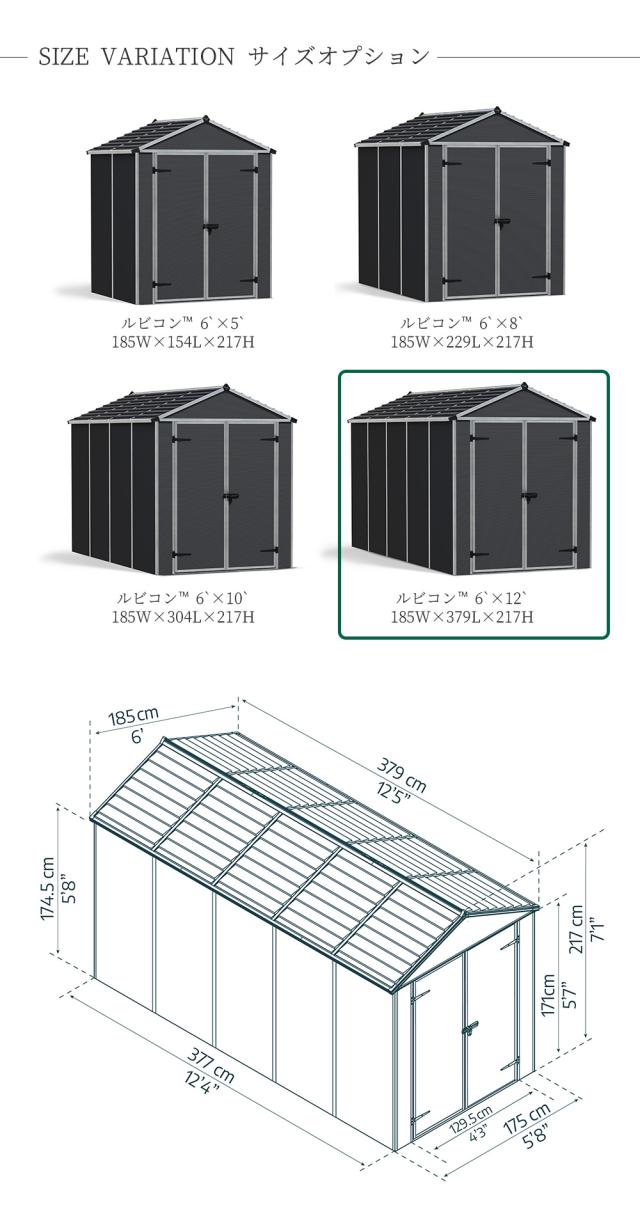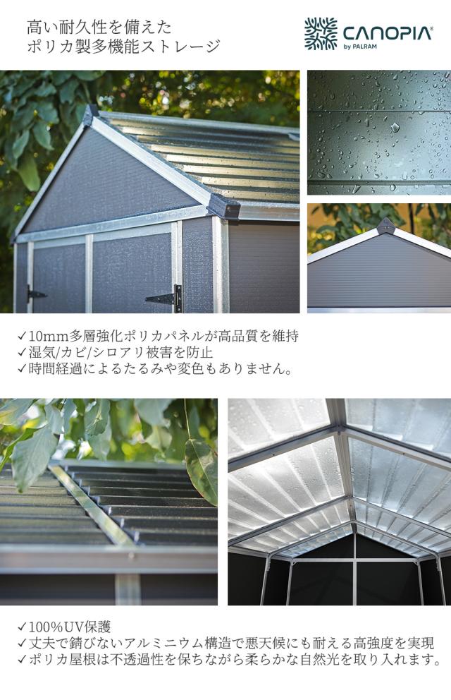 CANOPIA by PALRAM 6x12 パルラム カノピア ルビコン ガーデンシェッド 185cm 379cm 217cm サイズ 大型物置 ポリカーボネート制 多機能ストレージ バイクガレージ アウトドア 自転車 自転車収納 物置 屋外 大型 ガレージ デザイン物置
