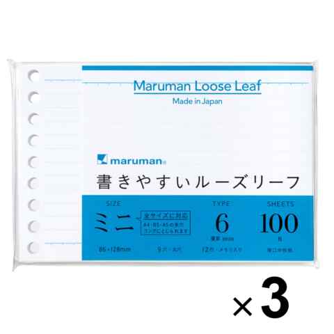 【まとめ買い】 3個セット マルマン 書きやすいルーズリーフミニ 6mm横罫 小さい メモ ノート 勉強 仕事 ダイアリー レシピ 送料無料