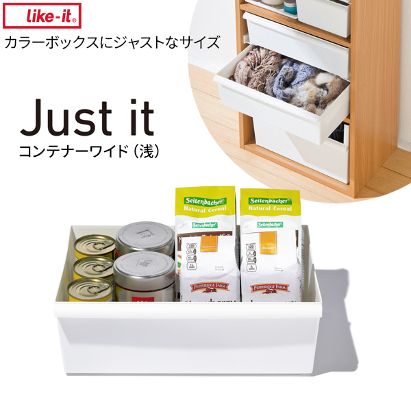 収納ボックス ジャストイット コンテナーワイド(浅) ホワイト JTR-02 | ライクイット 浅型 ケース 収納 カラーボックス収納 ストッカー コンテナー 積み重ね プラスチック 軽い 整理 雑貨 おもちゃ シンプル ジャストイット