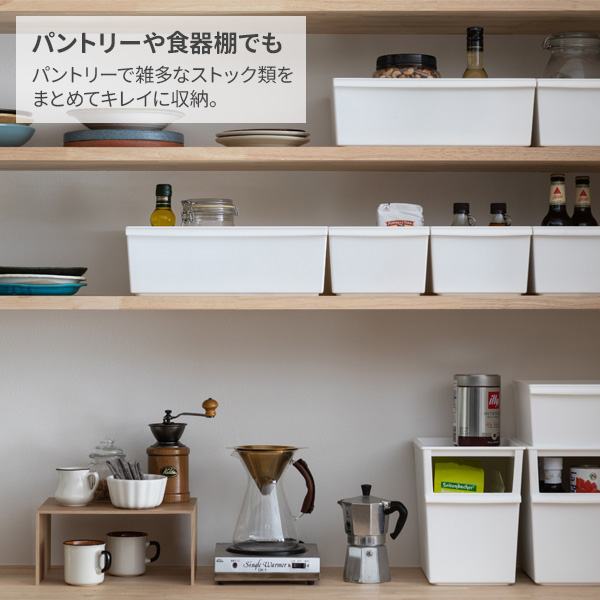 いろいろな場所で浅型だから、食器棚やパントリーの棚いも置けて、隠したい・取り出しやすいを叶えます。