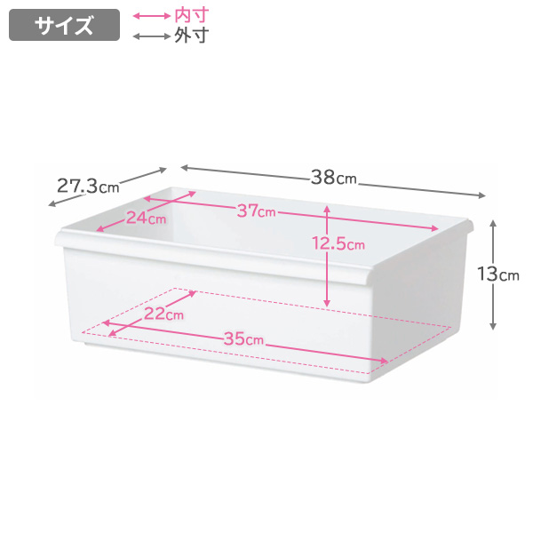 内寸サイズ(約):(底面)幅35×奥行22cm、(開口部)幅37×奥行24cm、(高さ)12.5cm