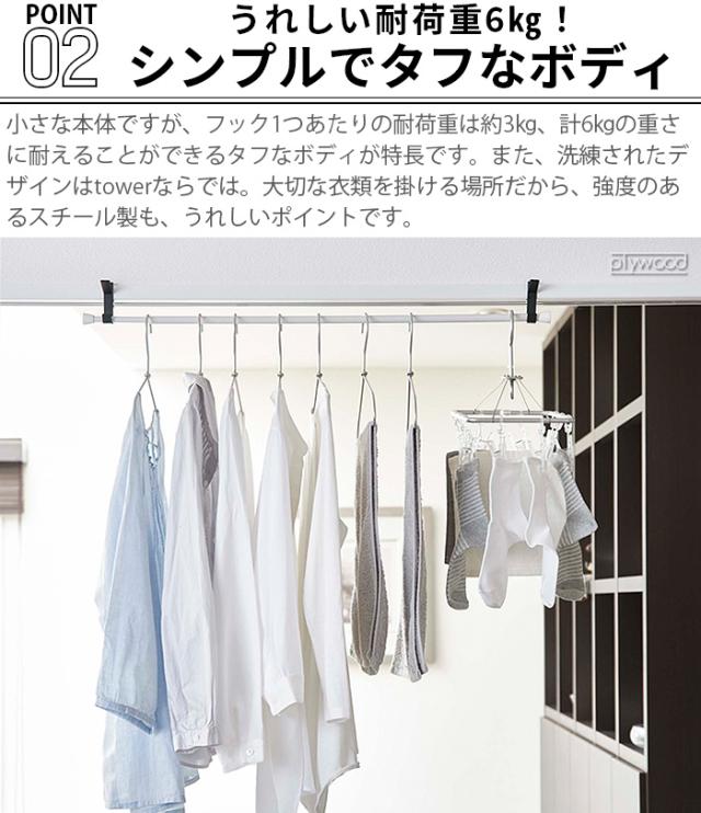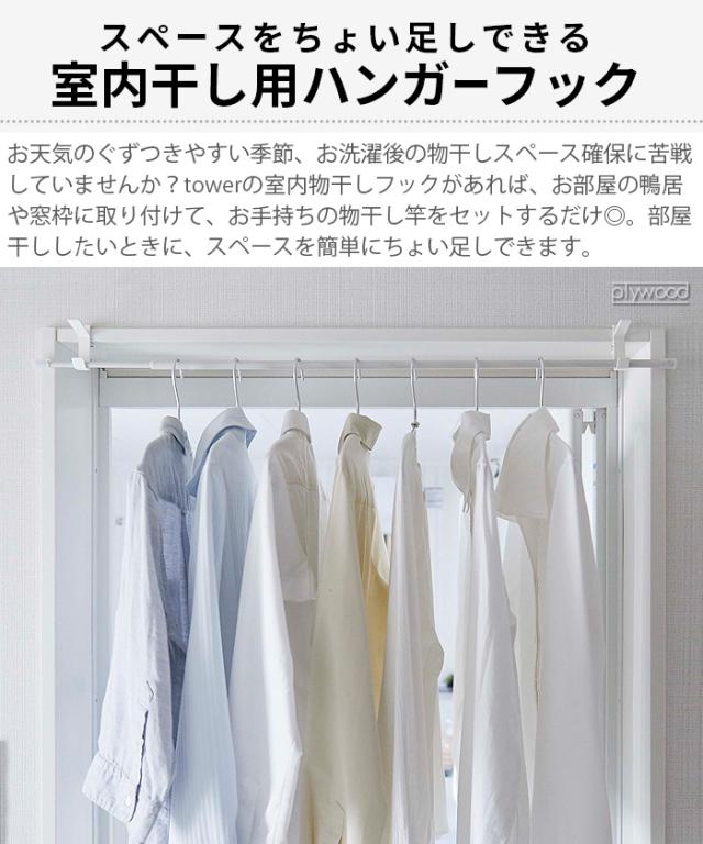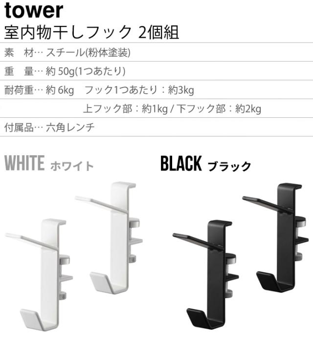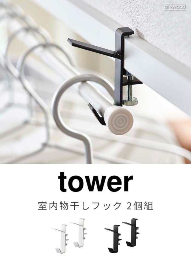 山崎実業 tower タワー 室内物干しフック 2個組 物干し 室内 部屋干し yamazaki タワーシリーズ 洗濯物干し 室内干し 物干しフック 物干し竿 吊り下げ収納 掛ける収納 おしゃれ シンプル 吊り下げ 5621 5622 ホワイト ブラック【12時迄のご注文は当日発送★P5倍】