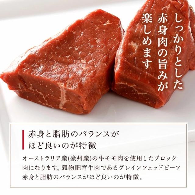 オーストラリア産(豪州産)の牛モモ肉を使用したブロック肉しっかりとした赤身肉の旨みが楽しめます脂身が少なく、さっぱりと食べられますので女性やお子様にもおすすめです