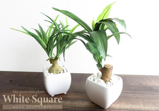 観葉植物 造花 ホワイトスクエアポット アーティフィシャル フェイクグリーン 陶器製鉢 おしゃれ インテリア