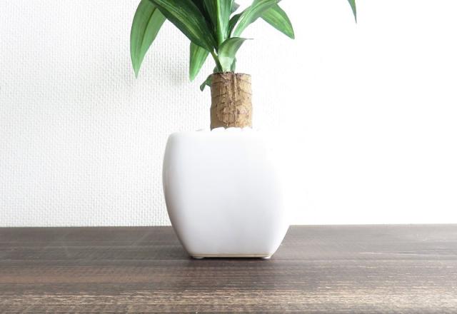 ほど良い光沢感に、やわらかな膨らみをもつホワイトカラーの陶器鉢はグリーンに良く馴染み、そっと寄り添う。 |