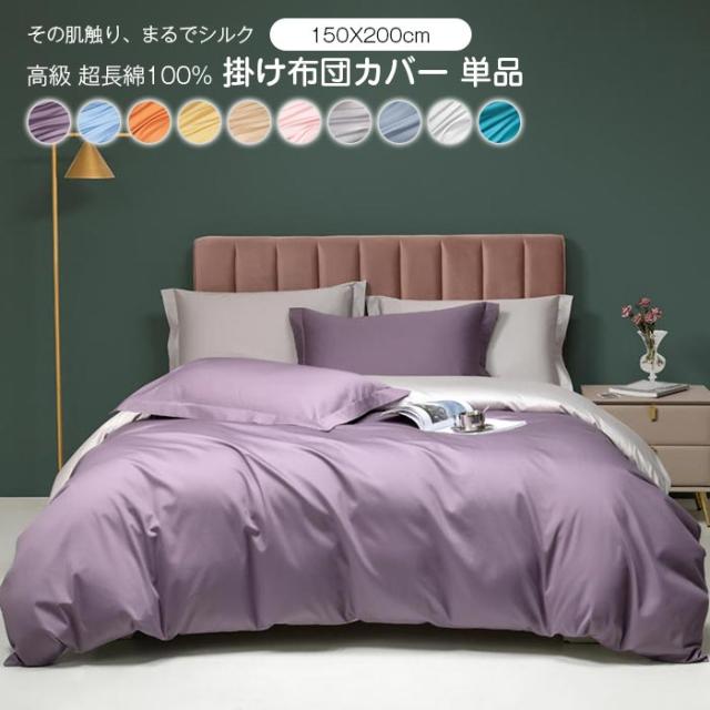 掛け布団カバー 単品 超長綿100% 光沢感 高密度 シングル サテン調 おしゃれ 上質 北欧 寝具カバー ホテル仕様 肌触り良く 通気吸汗 速乾 柔らか 洗濯可 静電気対策 和式洋式兼用 抗菌 防臭 バイカラー コットン ふとんカバー 布団カバー 150×200cm 新生活 洗い替え