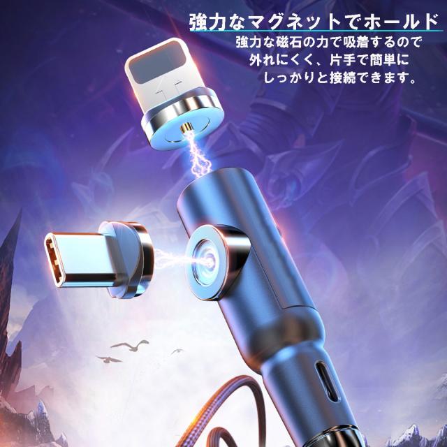 【L字 ストレート 一体型 2m】 マグネット充電ケーブル 端子 セット 3in1 Lightning iPhone Micro USB Tyep-C 充電 ケーブル Xperia Galaxy Android MicroUSB マイクロ ライトニングケーブル タイプC マイクロUSB マグネットケーブル