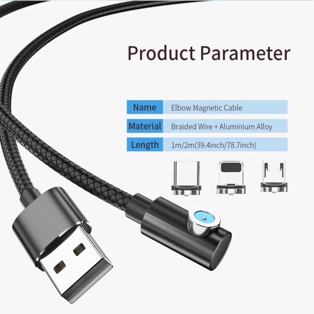 【L字型 2m】 マグネット充電ケーブル 端子 セット 3in1 360°回転 Lightning iPhone Micro USB Tyep-C 充電 ケーブル Xperia Galaxy Android MicroUSB マイクロ ライトニングケーブル タイプC マイクロUSB マグネットケーブル