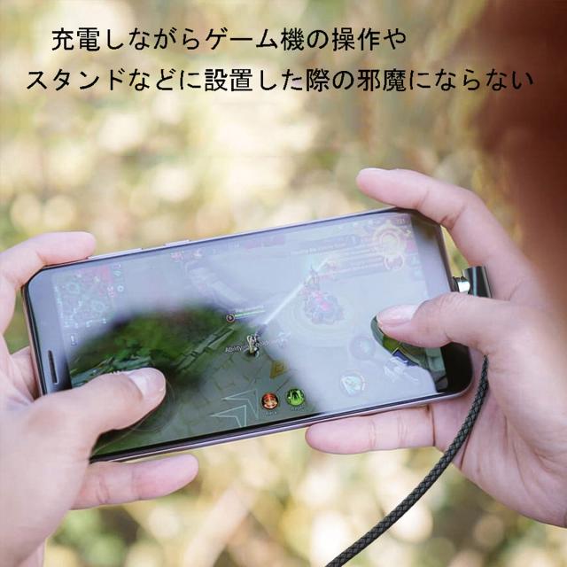 L字型のケーブルは充電しながらゲーム機の操作やスタンドなどに設置した際の邪魔にならずに使い勝手が良く、状況に応じてタイプを選べるので外出先でも大変便利にお使いいただけます。