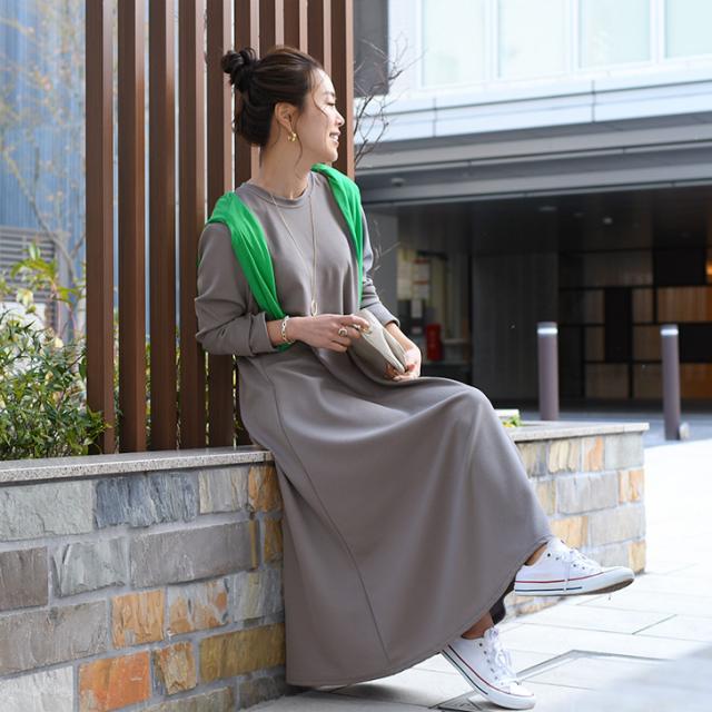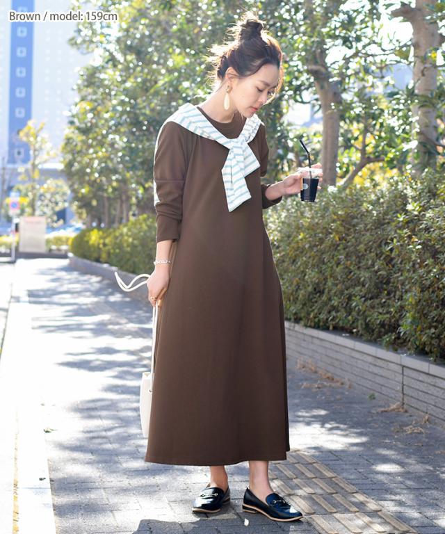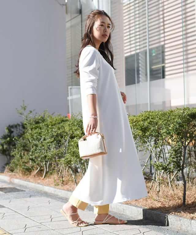 裾に向かって緩やかに広がるAラインシルエットでリラックスムード漂う1枚