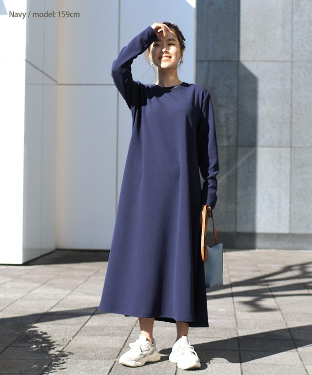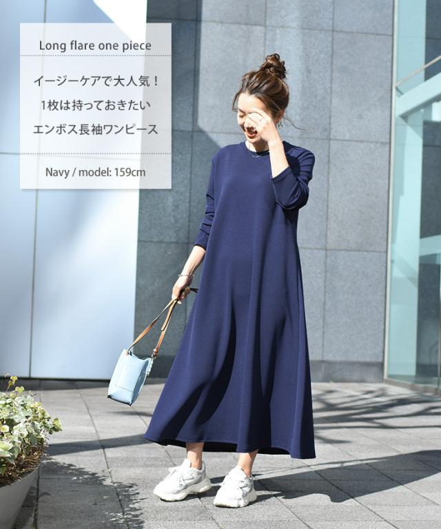 ●イージーケアで大人気!1枚は持っておきたいエンボス長袖ワンピース
