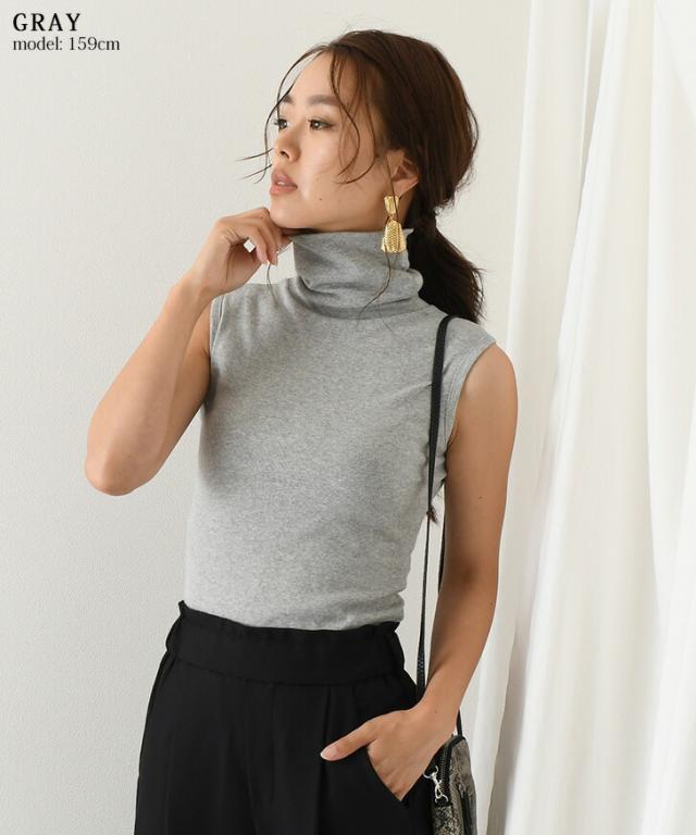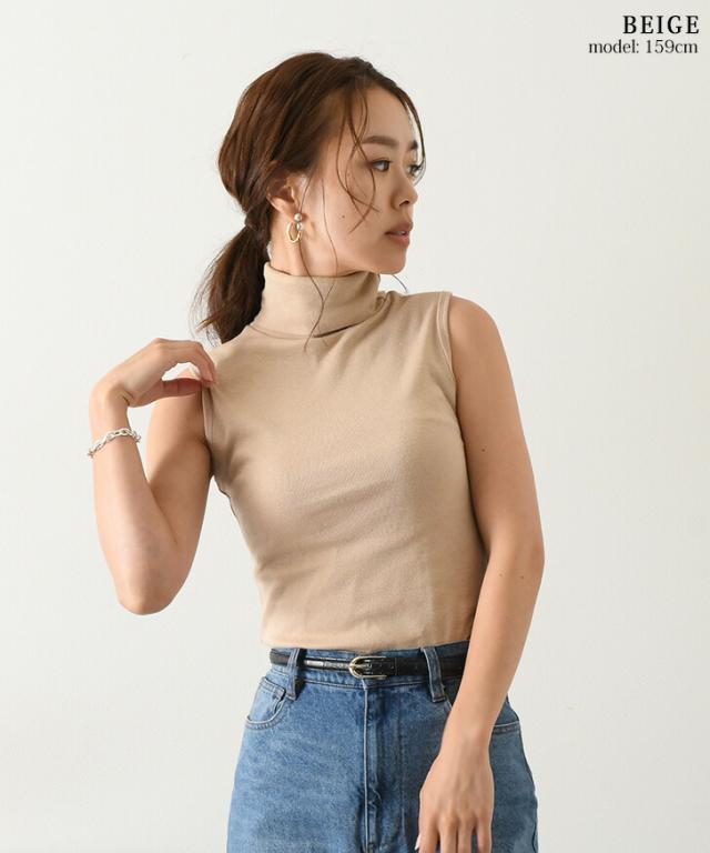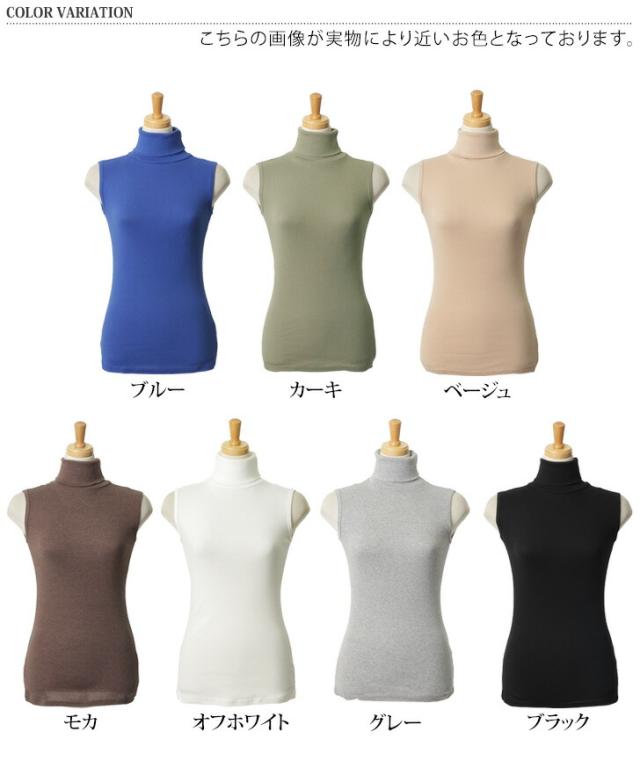 新作 ベーシックタートルネックノースリーブカットソー レディース トップス インナー タンクトップ Tシャツ フィット 細身 ハイネック レイヤード 重ね着 きれいめ カジュアル シンプル 袖なし 無地 春夏 秋冬