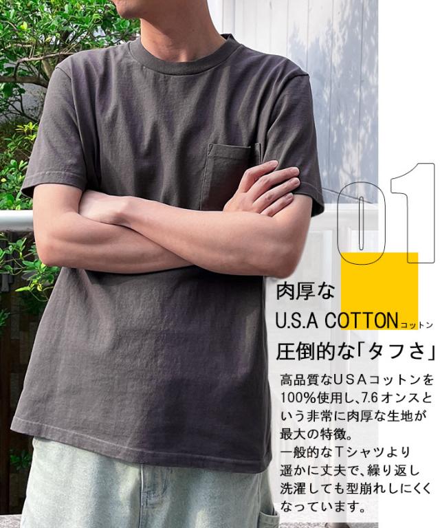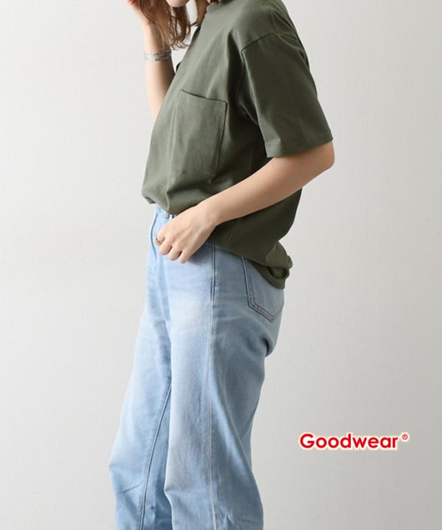 新作 Goodwear グッドウェア ポケット付きクルーネックTシャツ メンズ レディース 半袖 無地 カットソー ポケット 7.0oz 肉厚 インナー 綿 コットン100% 厚手 グッドウエア ブランド 2W72500 トップス