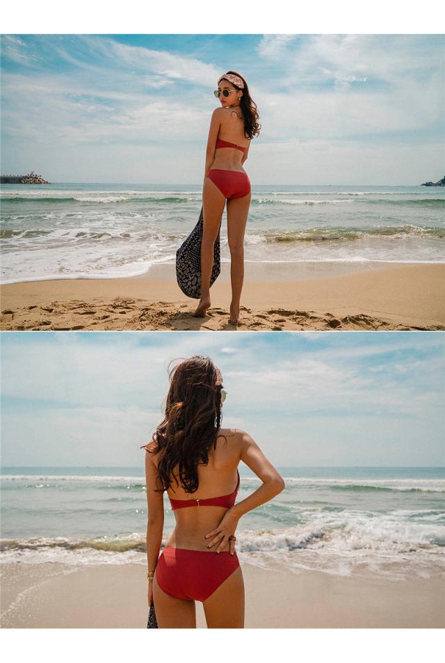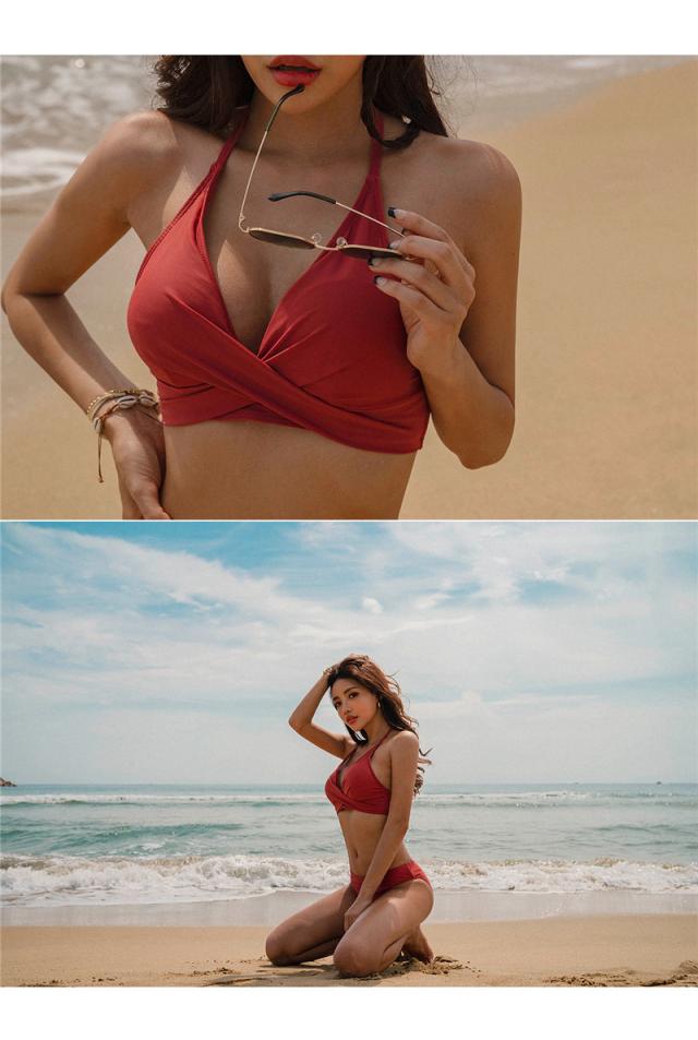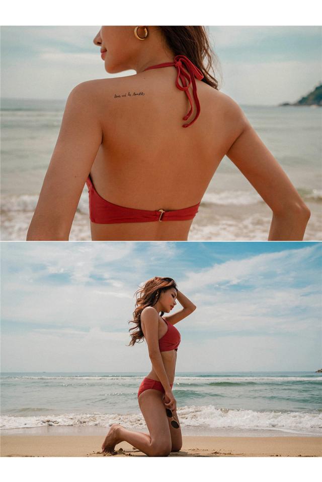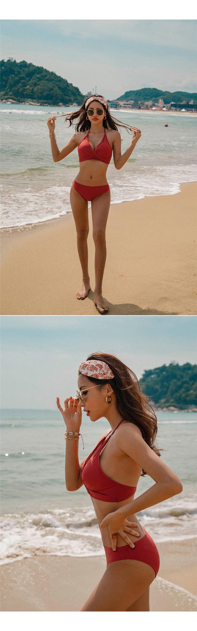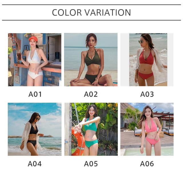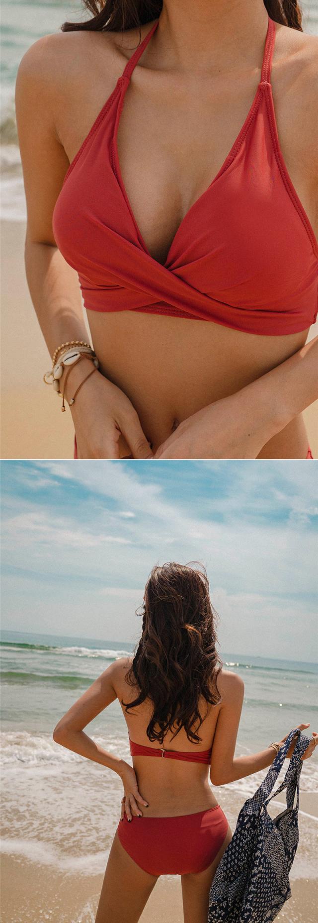 水着 ビキニ レディース 2点セット ビキニセット ビーチ ホルターネック セクシー 旅行用 ワイヤーなし セパレート パッド付