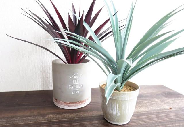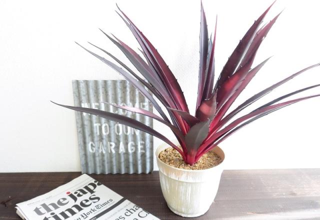 人工観葉植物 造花 ロングアガベ ポット 全長約48cm アガペ アガベ アーティフィシャル フェイクグリーン レッド グリーン 赤 緑 多肉植物 鉢物 プラスチック製鉢 おしゃれ インテリア