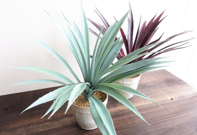 葉が放射状(ロゼット)に広がる人気の多肉植物アガベを再現。ロングタイプは長く、鋭く、ぷっくりとした葉がクールで存在感抜群。淡いライムグリーン系のグリーンは爽やかでナチュラル、ワインレッド系のレッドはエレガントで大人びた雰囲気を放つ。