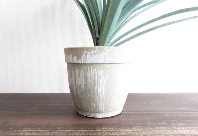 鉢はグレーを基調に白色のエイジング塗装を施しています。程良いダメージ感を持たせた雰囲気が魅力的。 |