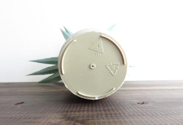 直径約Φ115mmのラウンド形状(円形)、4号相当サイズのプラスチック鉢、設置面に少し空間が出来るように仕上げています。 |
