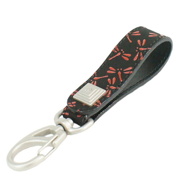 印伝 甲州印伝 印傳屋 上原勇七 キーホルダー 4701 とんぼ 黒地×赤漆 鹿革 本革 レザー 和柄 ブランド 冬ギフト バレンタイン 贈り物 YM01