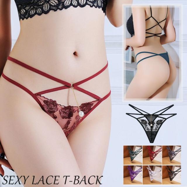 Tバック ショーツ レディース セクシー 総レース 人工パール ローライズ 透け感 花柄 ランジェリー ストレッチ フィット セール 勝負下着 オシャレ