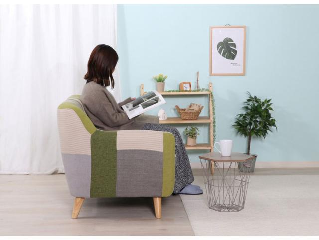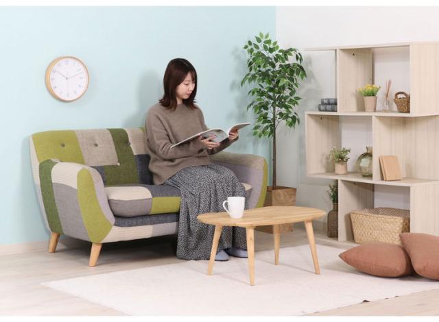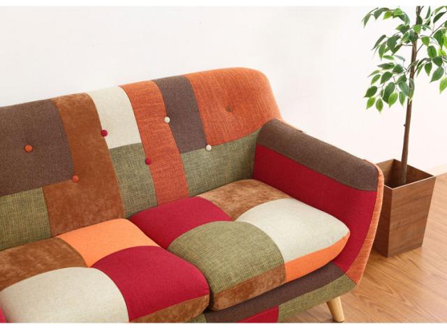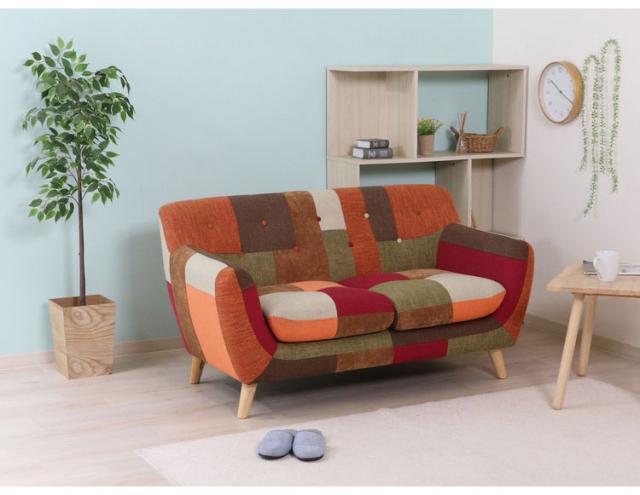 ソファ 2人掛け 幅134 パッチワーク おしゃれ 北欧 ファブリック カフェ ソファー sofa 二人掛け 2P ローソファ フロアソファ かわいい(代引不可)【送料無料】
