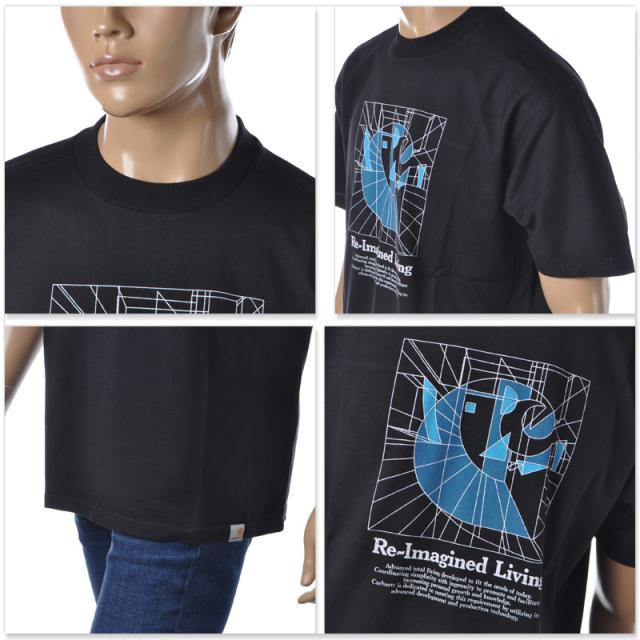 カーハート Carhartt WIP Tシャツ メンズ 半袖 カットソー クルーネック ブラック 黒 LIVING I030180 ロゴ グラフィックプリント ストリート カジュアル 人気 ブランド おしゃれ