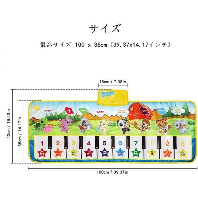 【早期教育&知育玩具】豊富な色のポータブルピアノマットは、子供が色、動物、ピアノの鍵を識別するのに役立ちます。子供たちが音楽を聞くとき、彼らは一緒に歌って踊ります。そして、それは子供たちの言語能力と手足調整能力を刺激します。
