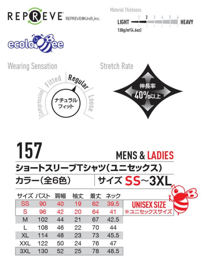 BURTLE バートル ショートスリーブTシャツ 157 半袖 インナー サイズSS〜XXL 男女兼用