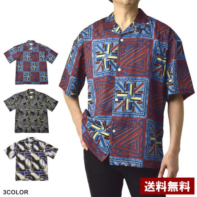 開襟シャツ メンズ 半袖シャツ ゆったり サテン プリント ブラウス トップス【B8Q】【パケ1】
