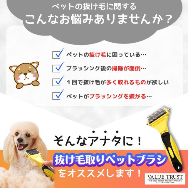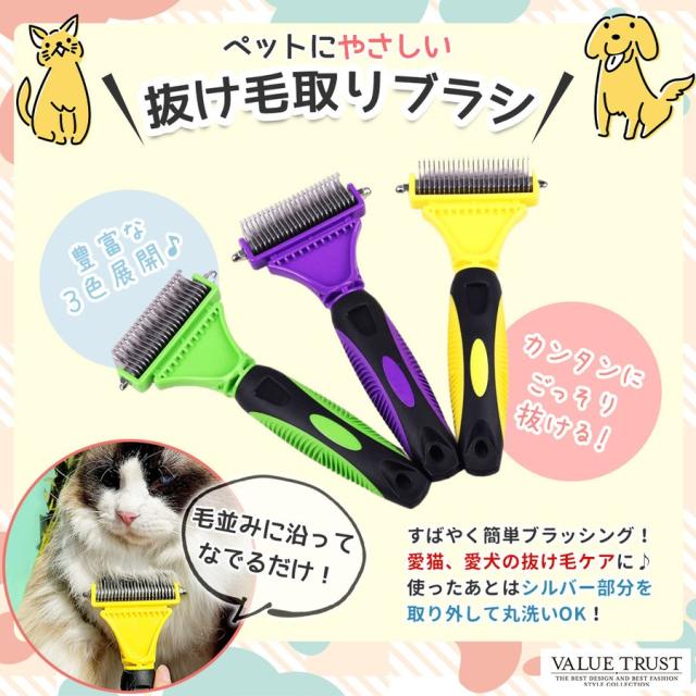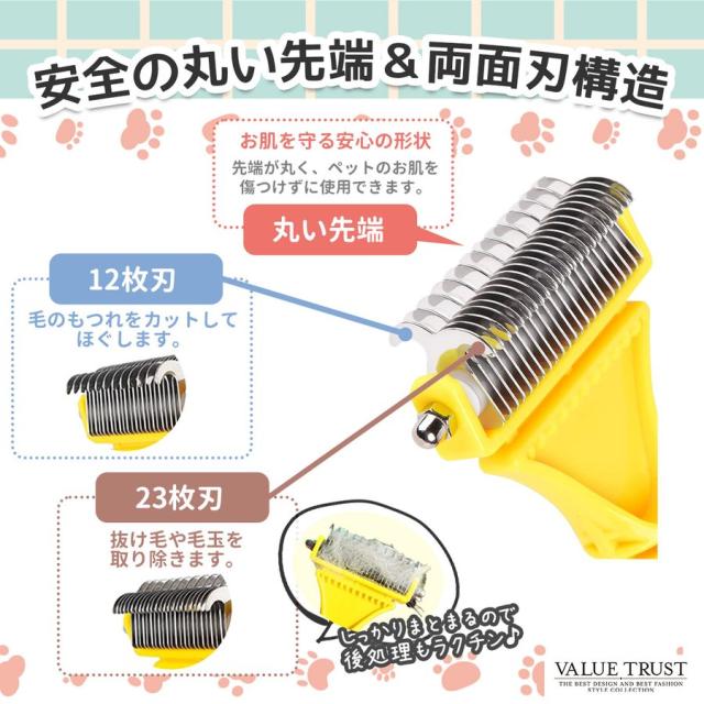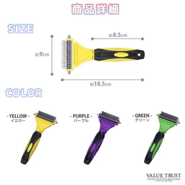 ペットブラシ 犬 抜け毛取り 毛玉取り コーム 長毛 短毛 グルーミング 両面刃 滑り止め ブラッシング