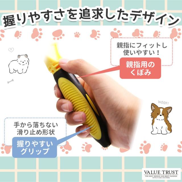 ペットの肌を傷つけない安全設計 ブラシの先端は丸みを帯びており、内側にカーブしたデザインとなっております。 ペットの肌を傷つけない安全な設計となっております。