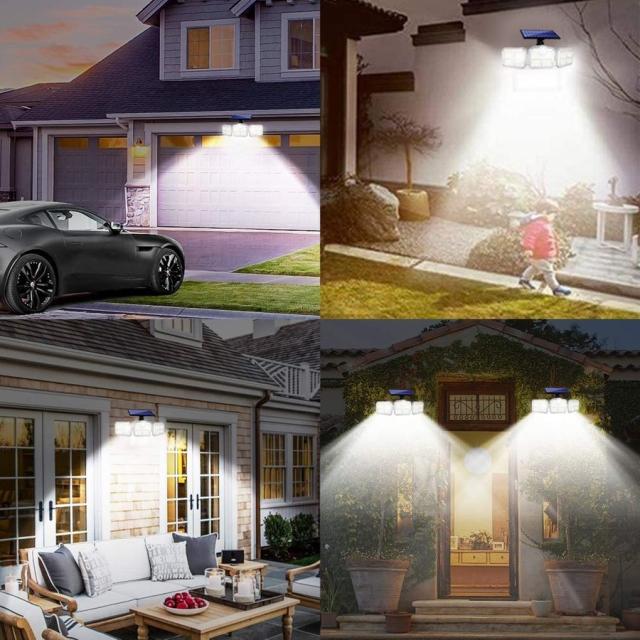 ソーラー ライト 屋外 防水 おしゃれ センサーライト 充電式 ガーデンソーラーライト 人感センサー ledライト 防犯 充電式 ガーデニング 駐車場 明るい 太陽光発電 3灯式 74LED IP65 自動点灯 送料無料 分離 パネル 人感センサーライト 3面発光 LED3モード 簡単設置 配線不要