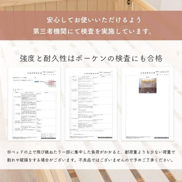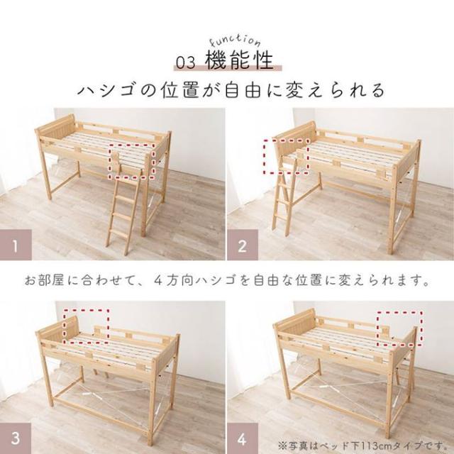 ロフトベッド シングル 頑丈 木製フレーム 天然木 敷き布団が使える すのこ床板 ベッド下113cm