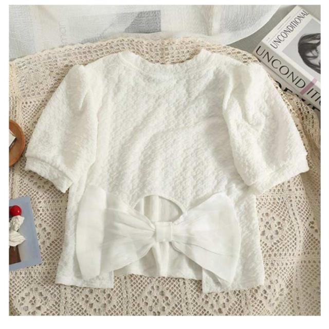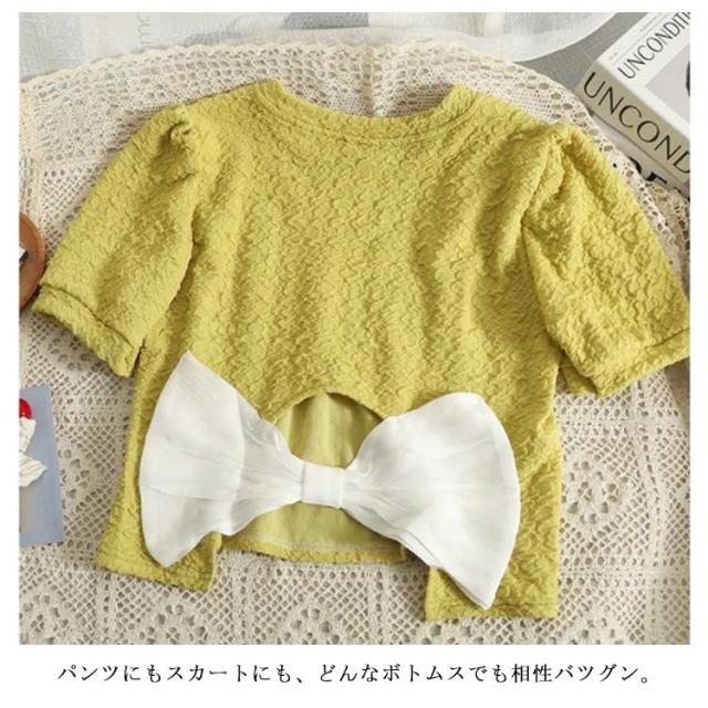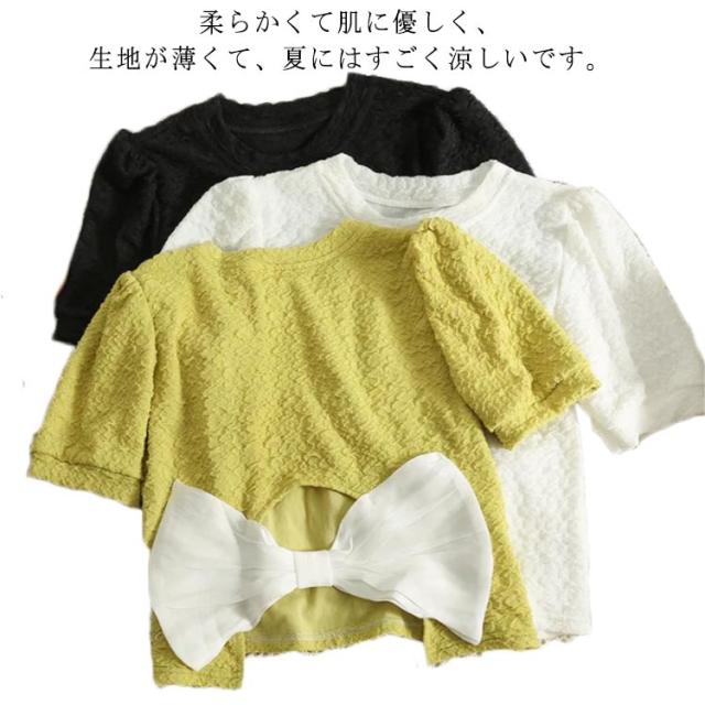 tシャツ キッズ 女の子 Tシャツ 半袖Tシャツ トップス 半袖 夏 ティーシャツ 子ども服 プルオーバー リボン アウトドア 旅行 通学 入学 ゆったり イエロー ホワイト ブラック 90cm 100cm 110cm 120cm 130cm
