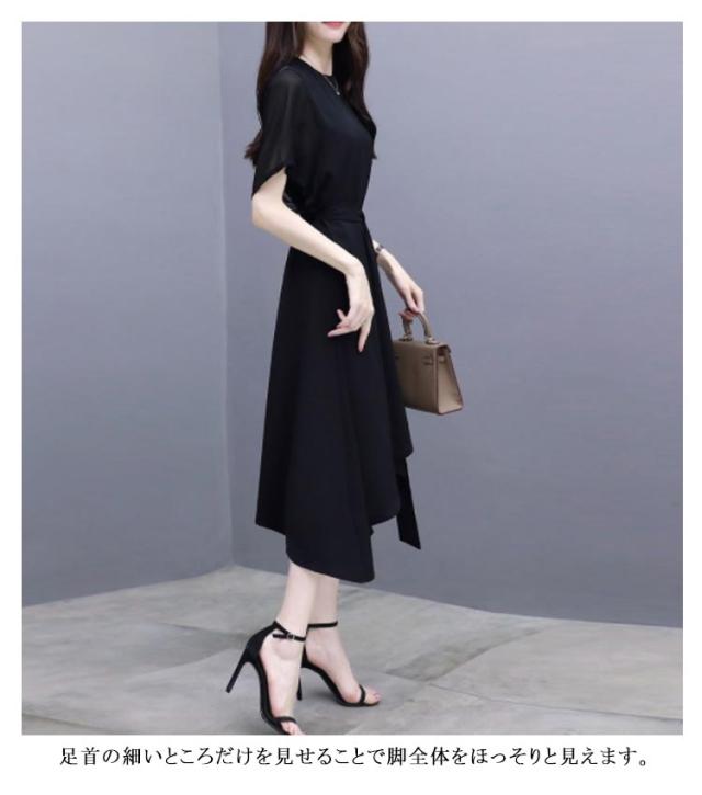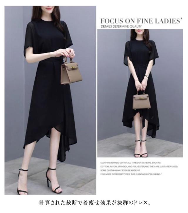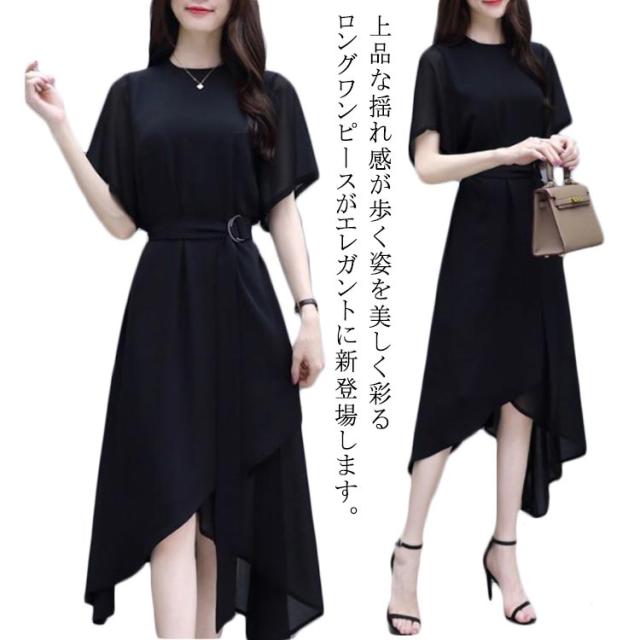 ワンピース ロングワンピース シフォンワンピース ロングワンピ 半袖 シフォン パーティードレス 体型カバー ブラック 大きいサイズ フォーマル パーティ 二次会 お呼ばれ 20代 30代 40代 50代