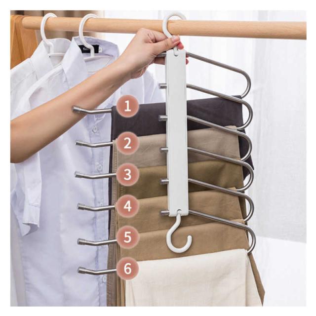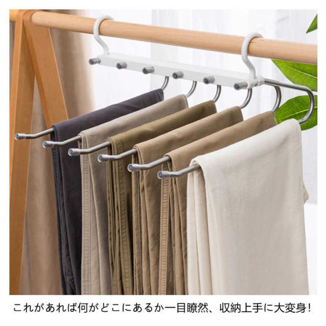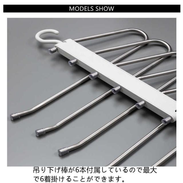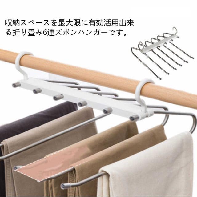 ズボンハンガー 6連 折り畳み式 スラックスハンガー 最大6本収納 省スペース 衣類収納 ステンレス鋼 耐久性 整理整頓 クローゼット