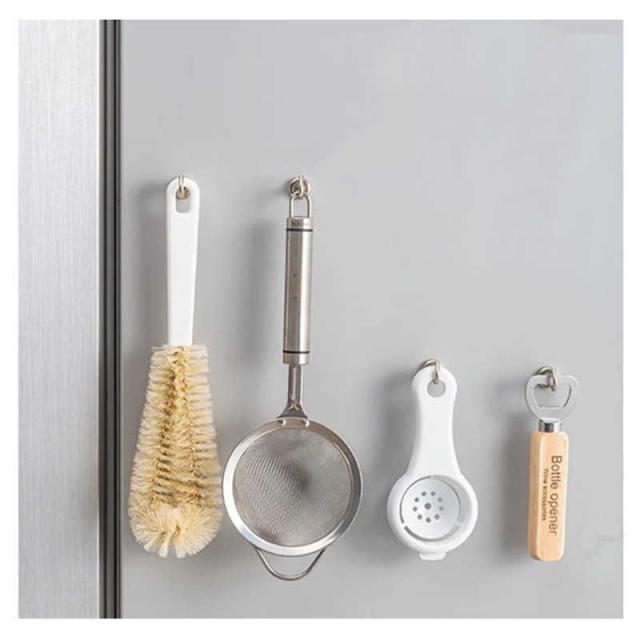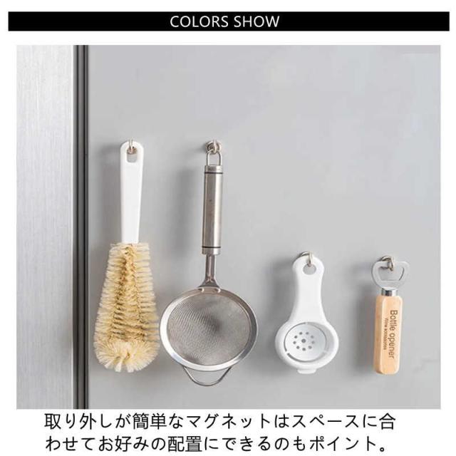 | シンプルにまとまる、便利なマグネットフック10個セット。 取り外しが簡単なマグネットはスペースに合わせてお好みの配置にできるのもポイント。 冷蔵庫にいつも使うツールを引っ掛けて。お買い物メモを挟んだり、タオルやミトンを引っ掛けてもオシャレ。 ラックやテーブルに取り付けて。お出かけセットとして帽子や折りたたみ傘をぶら下げて、インテリアの一部に。 アイデア次第でいろいろな使い方ができます。限られたのスペースの中に、新たな収納を作り出せます。 シンプル、無駄がなくどんな空間にもすっきりとなじむデザインが魅力ですね。 | |