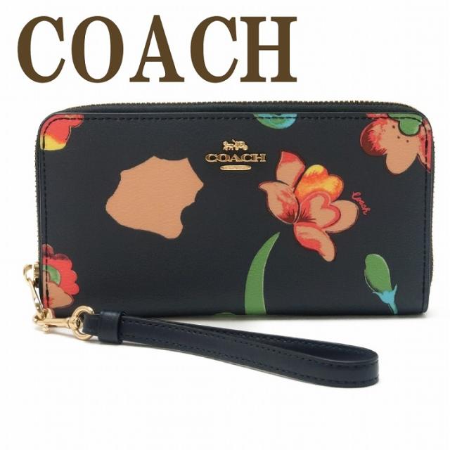 【商品】コーチ COACH 財布 レディース 長財布 レザー 花柄 ストラップ ラウンドファスナー C8694IMF23