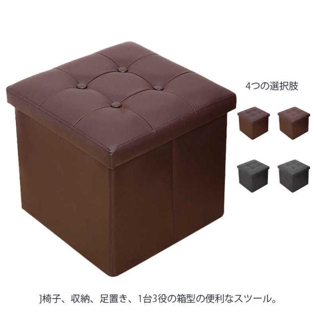収納ボックス 座れる 収納ベンチ 収納スツール 折り畳み 幅38cm レザー調 足置き 背もたれなし 物入れ 正方形 ベンチチェア 椅子 一人掛け ストレージボックス おもちゃ箱 ボックススツール
