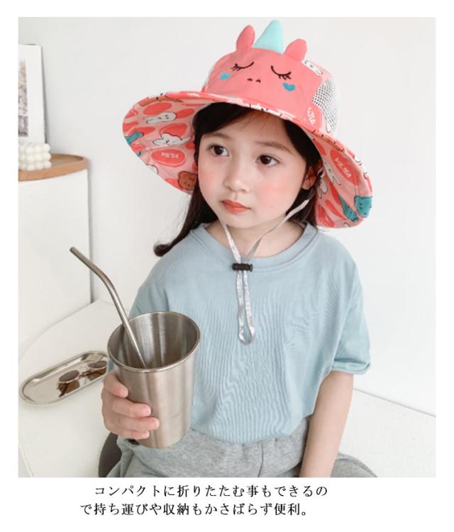 子供帽子 UVカット つば広帽子 ハット 折りたたみ 折り畳み あご紐付き 子ども 帽子 キッズ帽子 ベビー帽子 薄手 通気性 日焼け防止 紫外線対策 UVカット メッシュ素材 キッズ 女の子 男の子 コンパクト 涼しい 春夏 登山 日除け アニマルデザイン かわいい 幼稚園 保育園