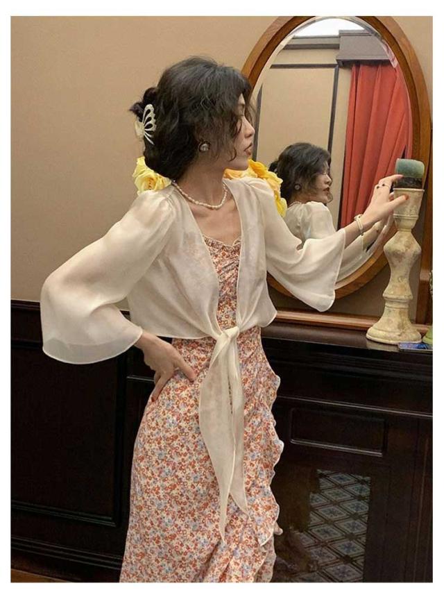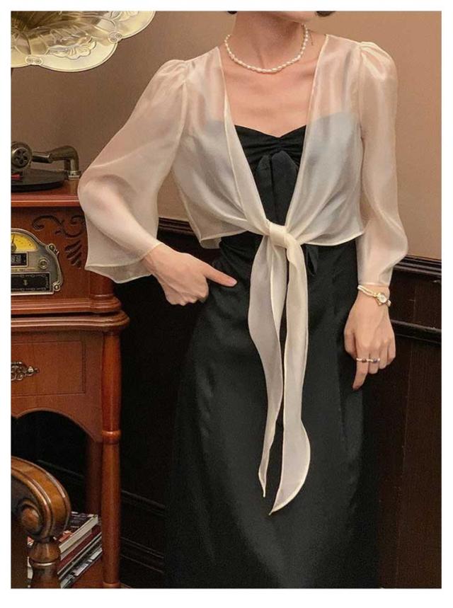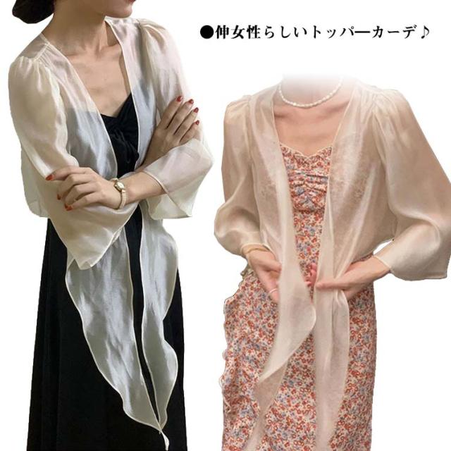 【送料無料】ガウン レディース トップス シースルーカーディガン レディース 長袖 七分袖 トップス トッパー カーディガン シンプル ェミニン/薄手/上品/オフィス/春/夏