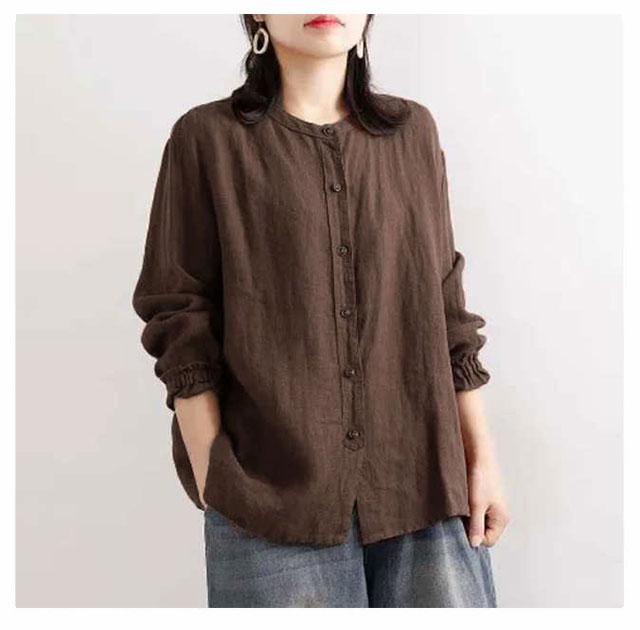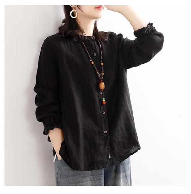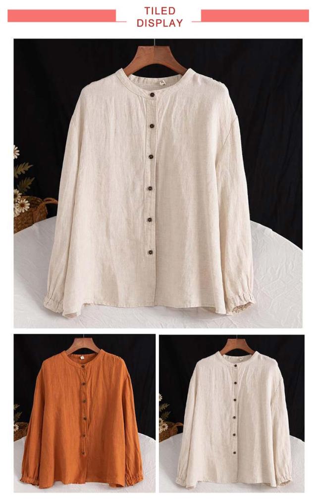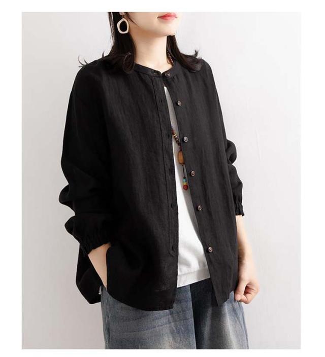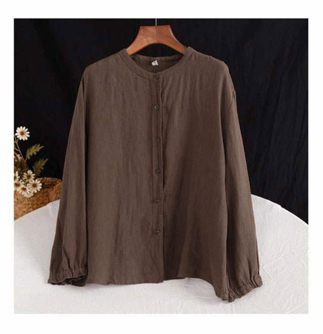 | ハリ感のあるサラリとした肌触りのシンプルな綿麻シャツ。 フロントボタンで前開き 羽織り としてもオシャレが楽しめるシャツです。 顔周りをスッキリ、上品に見せるノーカラー(襟なし)デザインで トレンド(旬 人気 注目)感もアップする長袖シャツ。 しっかり したハリ感と落ち着きの ある生地を使用し、キレイめシルエットをキープしてくれるシャツブラウスです。 シンプルな長袖ブラウスは、ボリュームスリーブ(ボリューム袖)のお袖にフリルをプラスし、大人可愛キャンディースリーブをメイク。 前ボタンなので、春 秋などの季節の変わり目のライトアウターとしても活躍して くれるビッグシルエットの ゆったりめトップス。 | |