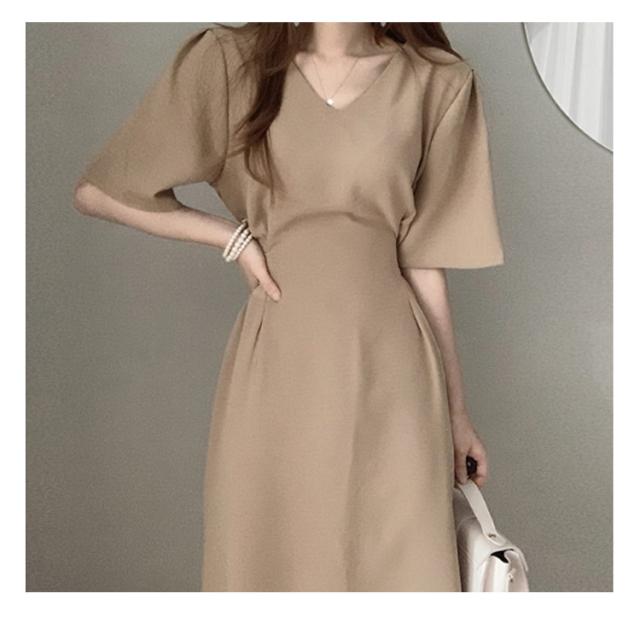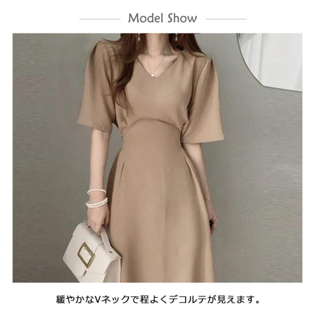 送料無料 ワンピース レディース vネック 半袖 韓国 ファッション Aライン キャメル 大きいサイズ 春 夏 ウエストシャーリング 大人 きれいめ 可愛い ルームウェア 夏ワンピ ストレッチ マキシワンピ リラックスウェア サマーワンピース 夏服