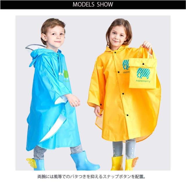 | 雨の日が楽しみになってしまう可愛いポンチョです♪ 両腕には風等でのバタつきを抑えるスナップボタンを配置。 背中マチ付きでランドセルやリュックの上からでもゆったり着用して頂けます。 フードは顔にかかる部分が透明です。深く被っても前が見えるので、安全性が高い!つばの縁部分に反射材を採用。 折り畳んで専用の収納袋に入れれば、とってもコンパクト!素材も軽く、お子様のバックに入れてもスペースを取りません。 | |