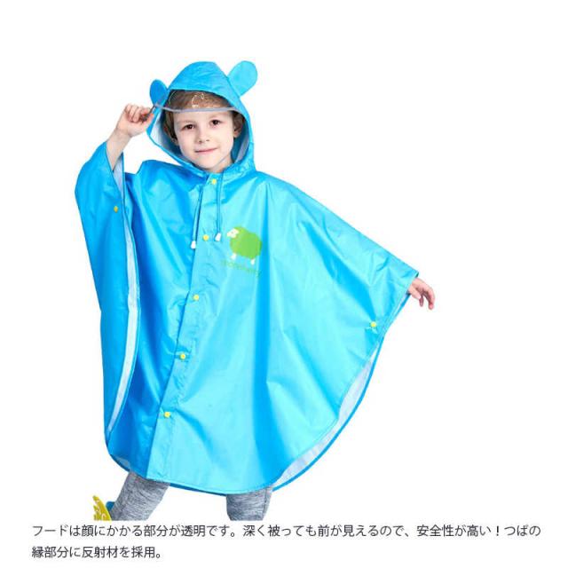 レインポンチョ レインコート キッズ ランドセル対応 耳付き 合羽 ポンチョ型 男の子 女の子 自転車 通学 通園 かわいい アウトドア 雨具 保育所 保育園 幼稚園 運動会 遠足 林間学校 キャンプ