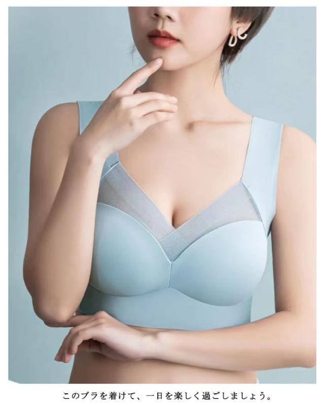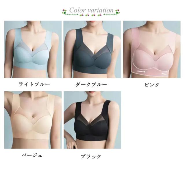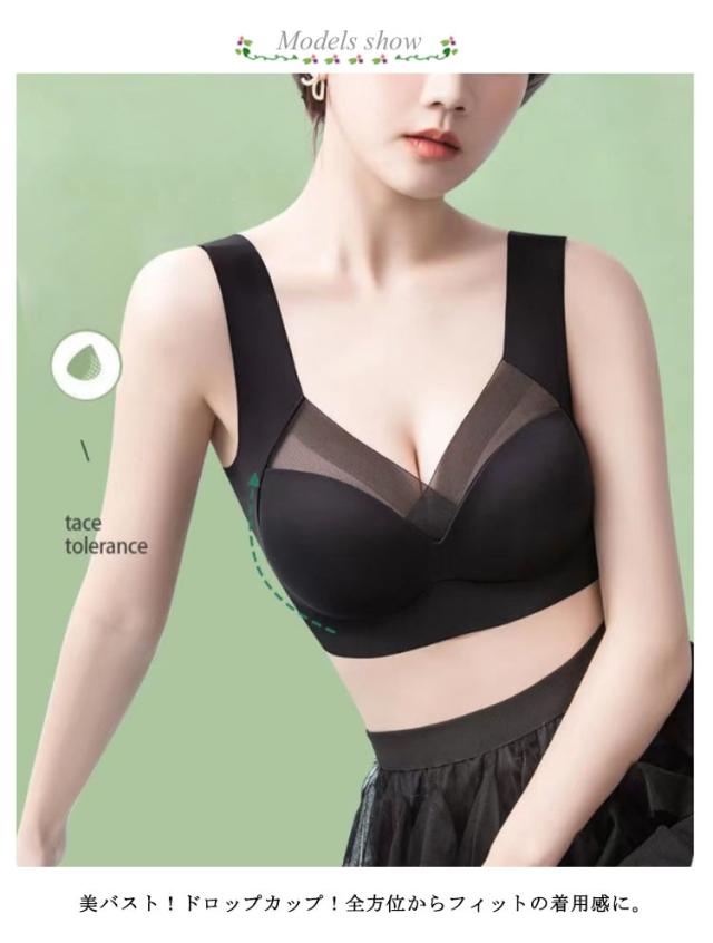 | ここちよく、美しく、スタイリッシュに楽しむために、夏のおしゃれに自信をくれる、技ありのブラ。 美バスト!ドロップカップ!全方位からフィットの着用感に。 どんな体型にも!副乳収納!美バストプロデュース。 ノンワイヤーですがサイドからしっかりと胸をサポート。サイド部分を少し強く編み分けることにより、脇への横流れを防止。 ノンワイヤー・アジャスター・ホックのないストレスフリーな設計で、ソフトなつけごこちとスムーズな動きやすさを実現! フィットネスやヨガなどスポーツ時しっかりと胸をホールドしてくれるので安定感抜群です。 装着が楽なので夜用に限らず日中の普段使いとして使用される方も続出しています。 このブラを着けて、一日を楽しく過ごしましょう。 | |