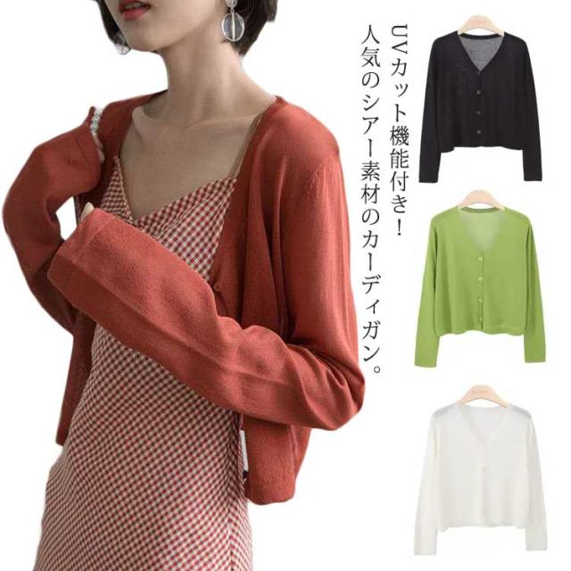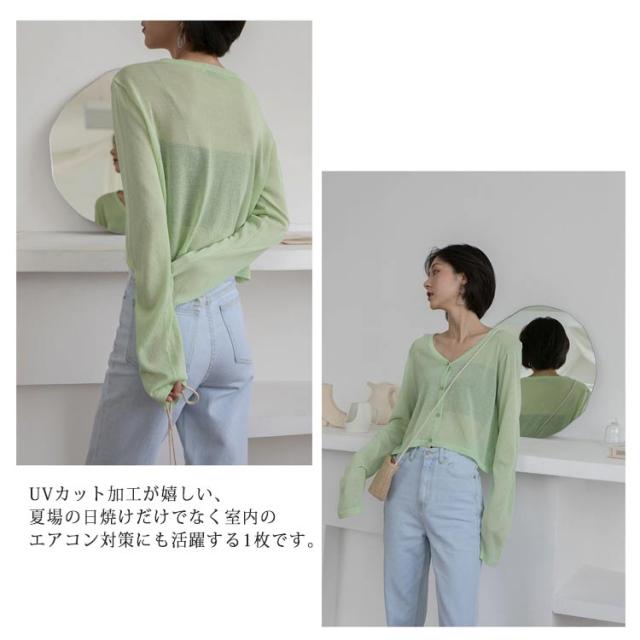 カーディガン シアーカーディガン サマーニット 薄手 レディース Vネック 長袖 涼しい 冷感 ニットカーディガン 透け感 ニットソー 夏 UVカット 紫外線対策 ニットトップス 羽織り 冷房対策 ショート丈 ゆったり 春服 夏服 コンパクト 軽い オフィス 旅行 春 夏 送料無料