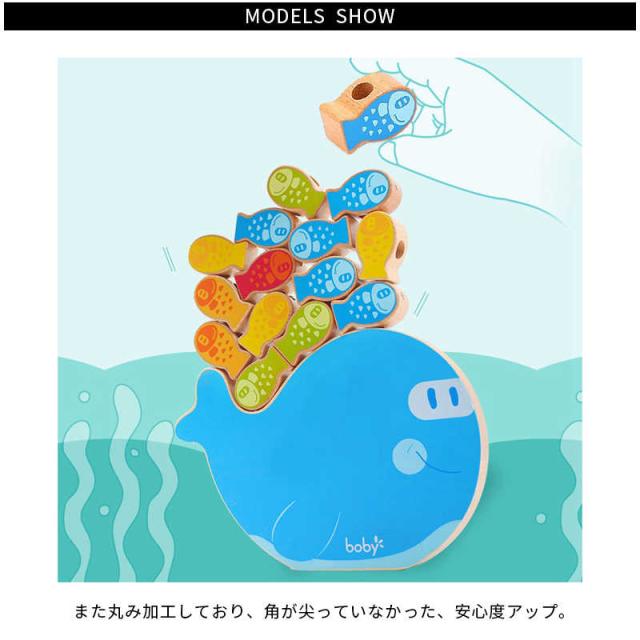 | 温かみのある木製魚遊びおもちゃです。 遊び方も様々で小さいな子どもでもわかりやすい。 また丸み加工しており、角が尖っていなかった、安心度アップ。小さいな子どもでもご利用できます。 遊び方1:「大人気な紐通し」:ピースはカラフルな魚の塗装で見た目だげで楽しめ、専用の穴があり、ピースを紐に通して遊ぶのはもちろんです、更に付属の紐が太めなので、初心者としての子どもでも遊びやすい。 遊び方2:「面白いお釣り遊び」:マグネット式を採用し、釣り竿を利用して?ちゃんの磁石を釣り竿に引きつけ、?ちゃんが簡単に?り上げます。おもちゃを通してお釣りの面白さを体験でき、子ども中で大ヒットです。 遊び方3:「ゆらゆらバランスゲーム」:魚の形のつみきを上に積めるとかわいい魚がゆらゆら〜〜全てのつみきを落とさず上手に乗せることができますか?パパ・ママも子どもと一緒に挑戦してみましょう〜親子タイムスタート! 遊び方4:「楽しいパズル遊び」:上記以外の遊び方ができます。お子様は土台に書く数字と色を観察して一人で順番に積んだり、色のことにどんどん積んだりと楽しい、遊びながら色と数字への認識することが可能。5本の棒は土台と繋がないので取り付けが便利です。 | |