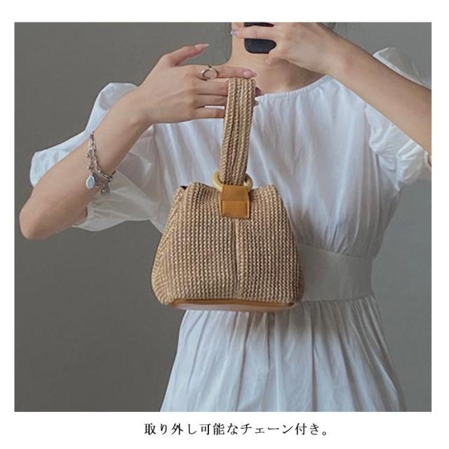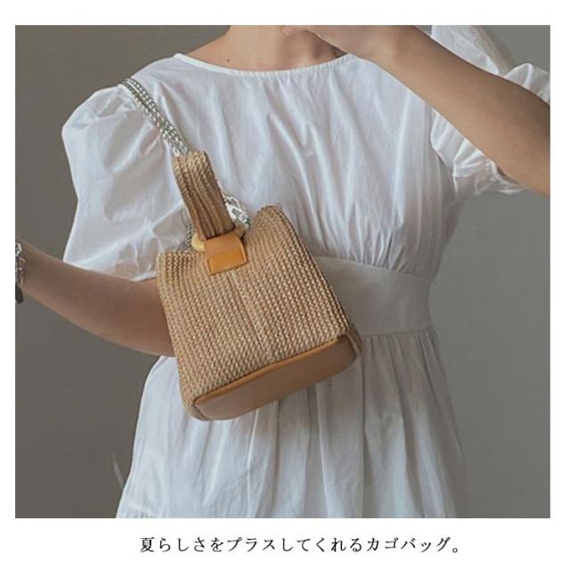 かごバッグ レディース バケツ型 ショルダー バッグ バスケット ミニショルダー かごバック 自立 ショルダーバック バケツバック チェーン付き